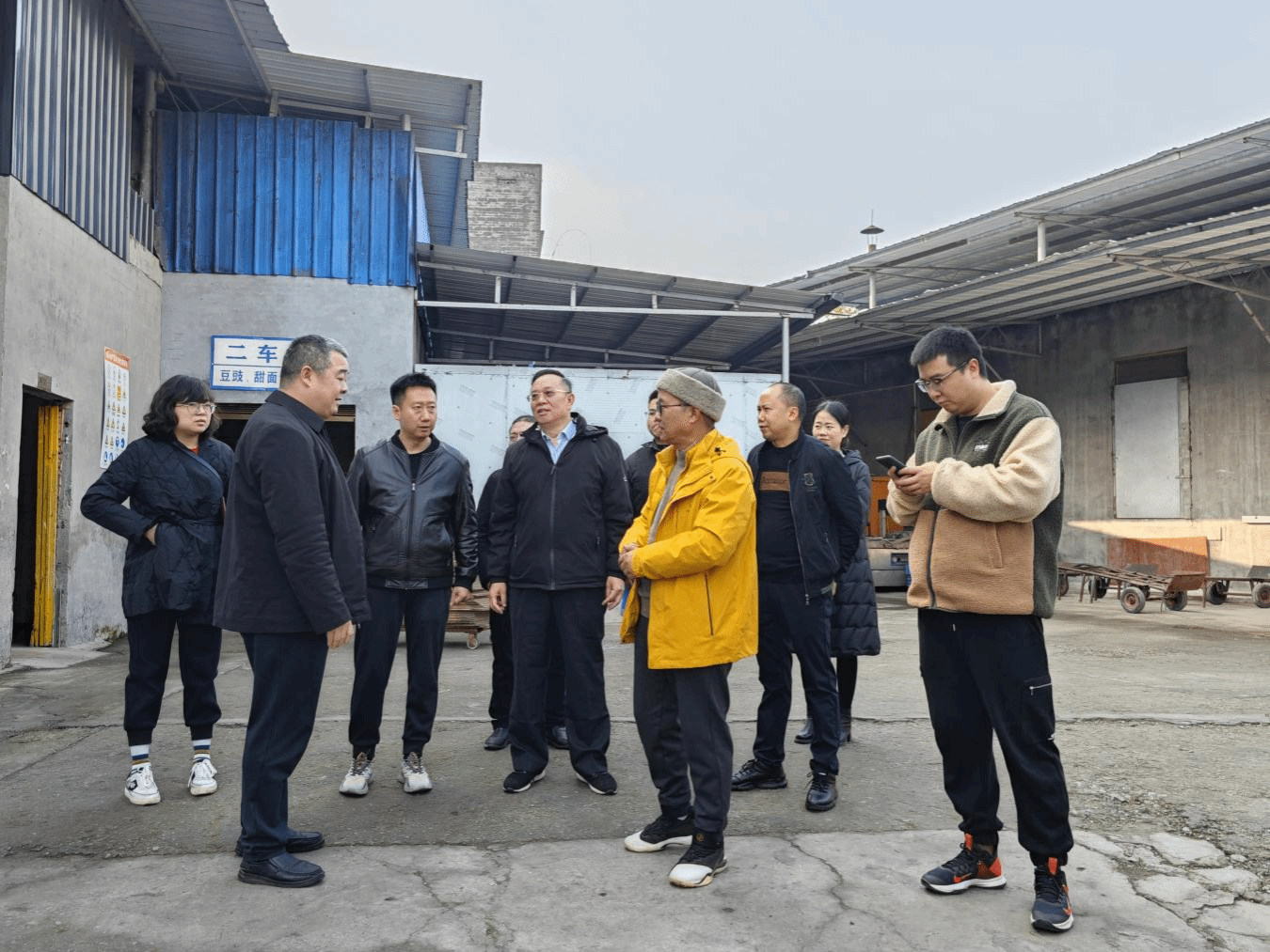 2023年12月4日,学院新葡的京集团350vip党总书记周万春、办公室主任周艺、旅游管理教研室刘聪教授、毕业班辅导员等一行赴重庆永川豆豉协会开展“访企拓岗促就业”活动。周书记一行受到了永川区豆豉协会会长游永刚、重庆金豉园食品有限公司总经理徐光久、副总经理徐楷骏的热情接待了。参访团一行实地参观重庆市永川区傻儿调味品有限公司、重庆金豉园食品有限公司等公司。
