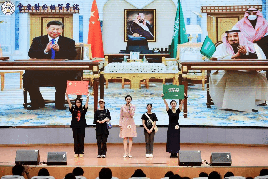 随后参赛选手围绕“一带一路”沿线国家的旅游资源、传统文化、中外交流等内容通过PPT讲解形式再现沿线国家的风土人情。在导游讲解环节完毕后选手进行“一带一路”沿线国家文旅知识竞赛。比赛现场紧张热烈,选手们思维敏捷,展现出贸院学子扎实的人文素养、丰富的知识储备和奋力拼搏不服输的劲头。