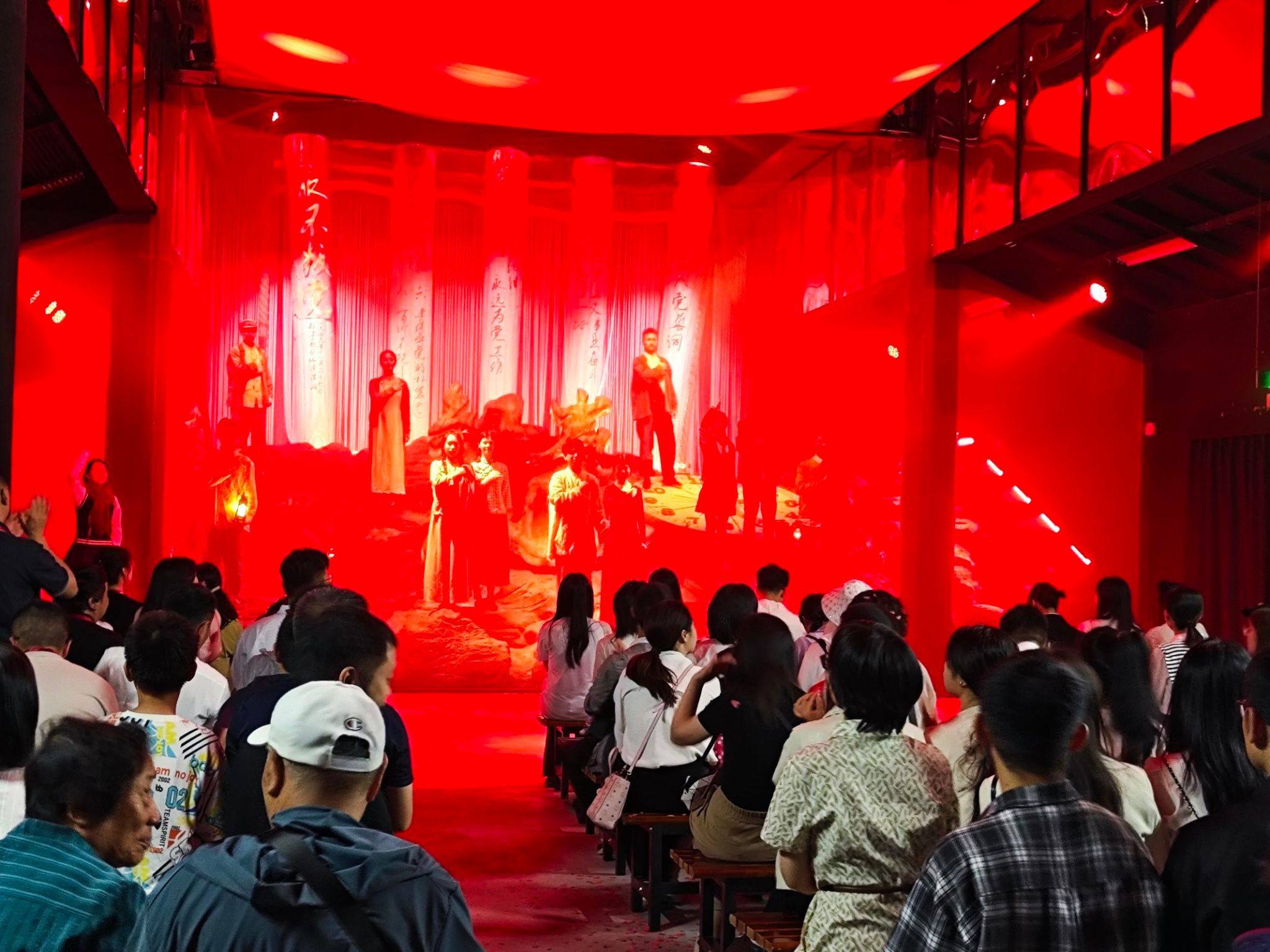 当日下午,全体党员在渣滓洞观看沉浸式表演《红岩红》,重回那段风雨如磐的革命斗争岁月,《红岩红》围绕“永不叛党”的主题,再现了英烈们的精神意志与信仰力量,全体党员被红岩英烈与家人之间的真切情感以及大无谓的牺牲精神所感染。随后,全体党员来到渣滓洞监狱旧址感受红岩魂,通过对渣滓洞集中营的道路岗亭、机枪扫射点、希望逃生墙、特务办公室、刑讯室等地进行探访,了解当时革命先辈们被关押之地周围严酷的监控环境和革命先辈们曾经遭受的酷刑。